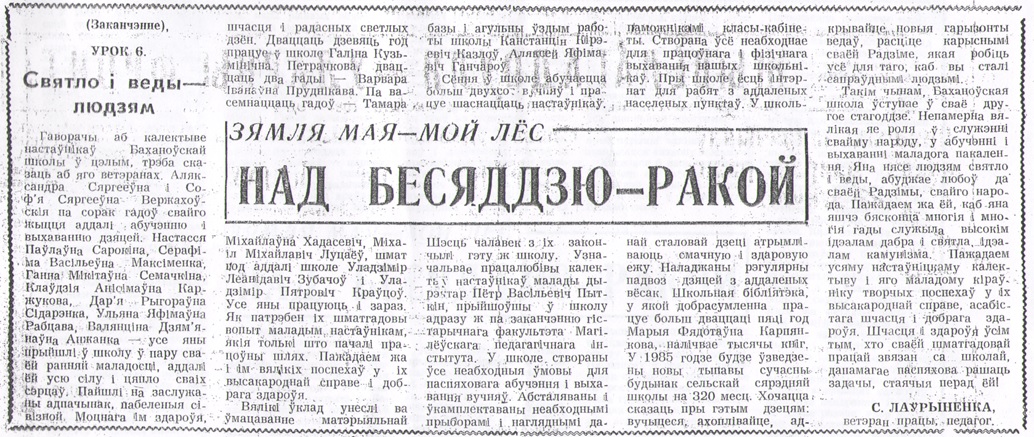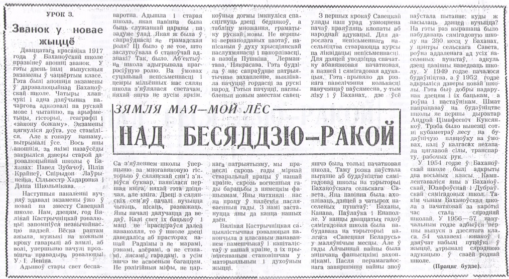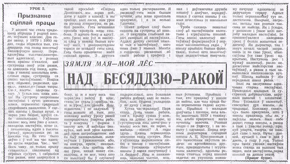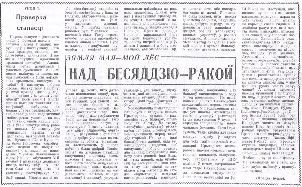 — Так продолжалось два года, пока меня не «сосватали» секретарем Боханского сельского Совета депутатов, — вспоминает Анастасия Кирилловна. — Избиралась секретарем комсомольской организации колхоза «Чырвоны Маяк», в которой состояла на учете. Перед этим вступила в члены КПСС. Но потом поняла, что эта работа не по мне. Моя стихия — школа. Стала проситься назад, поняли, пошли навстречу и направили в Василёвскую восьмилетнюю школу преподавать иностранный (немецкий) язык.