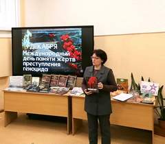 В отделе обслуживания и информации центральной библиотеки прошёл информационный час «Жертвы той войны» для учащихся 7-го класса СШ №1. Библиотекарь доступно и обстоятельно разъяснила смысл понятия «геноцид», рассказала о расследовании уголовного дела, возбужденного Генеральной прокуратурой, и об установлении фактов геноцида на белорусской земле. Также были озвучены важные правовые шаги: принятие в январе 2022 года Закона «О геноциде белорусского народа», который закрепляет юридическое признание геноцида, совершённого нацистскими преступниками и их пособниками в годы Великой Отечественной войны и в послевоенный период.