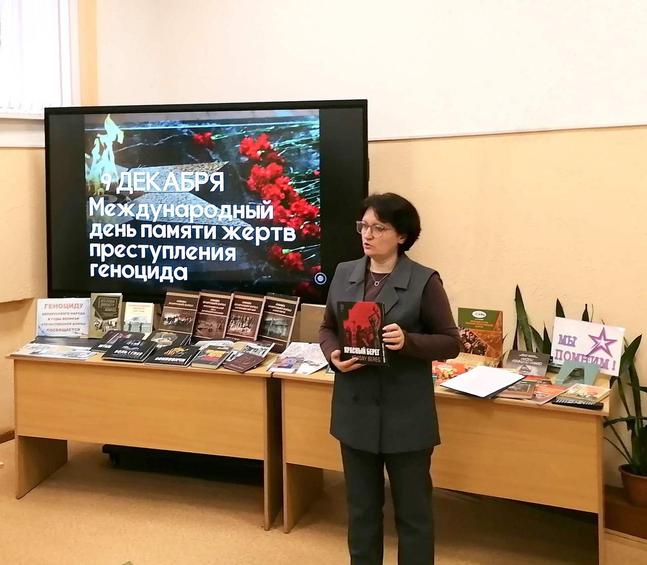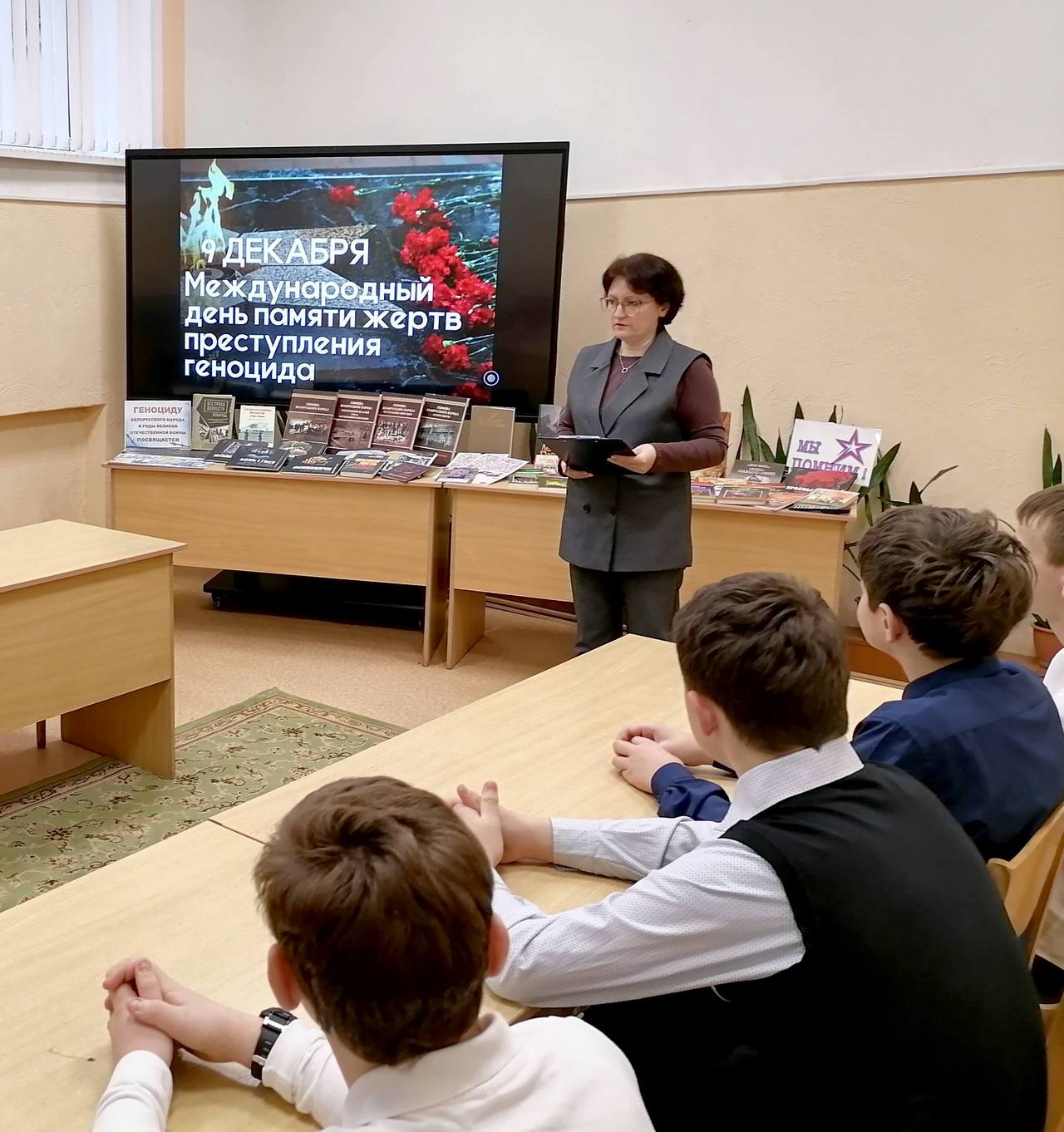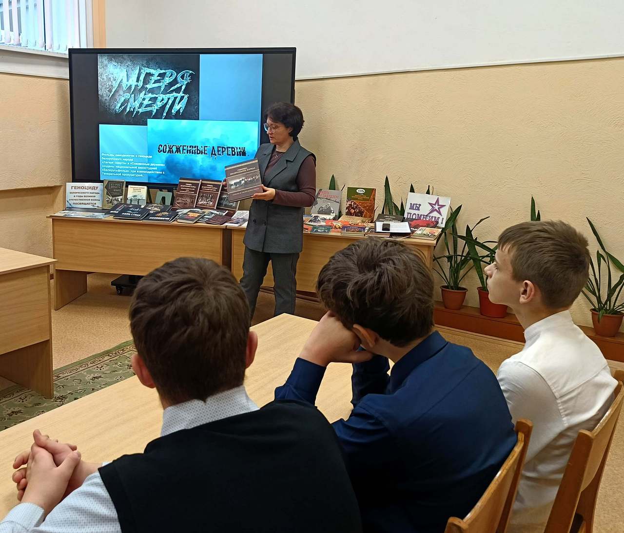 Программа мероприятия включала заочную экскурсию в мемориальный комплекс в д. Борки Кировского района — место памяти сожжённых в годы войны деревень Могилёвщины. Также библиотекарь обратила внимание ребят на совместные проекты Генеральной прокуратуры со средствами массовой информации, раскрывающие факты геноцида. Для участников мероприятия был продемонстрирован один из выпусков совместного проекта Генеральной прокуратуры и агентства телевизионных новостей «Геноцид. Без права на жизнь».
