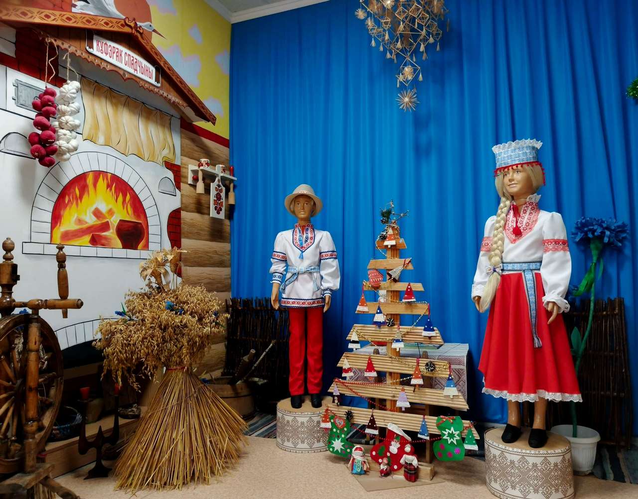 А в краеведческом уголке вас встретит уникальная этно-ёлка, украшенная в народных традициях, которая перенесёт в мир самобытной культуры и праздничных обрядов.