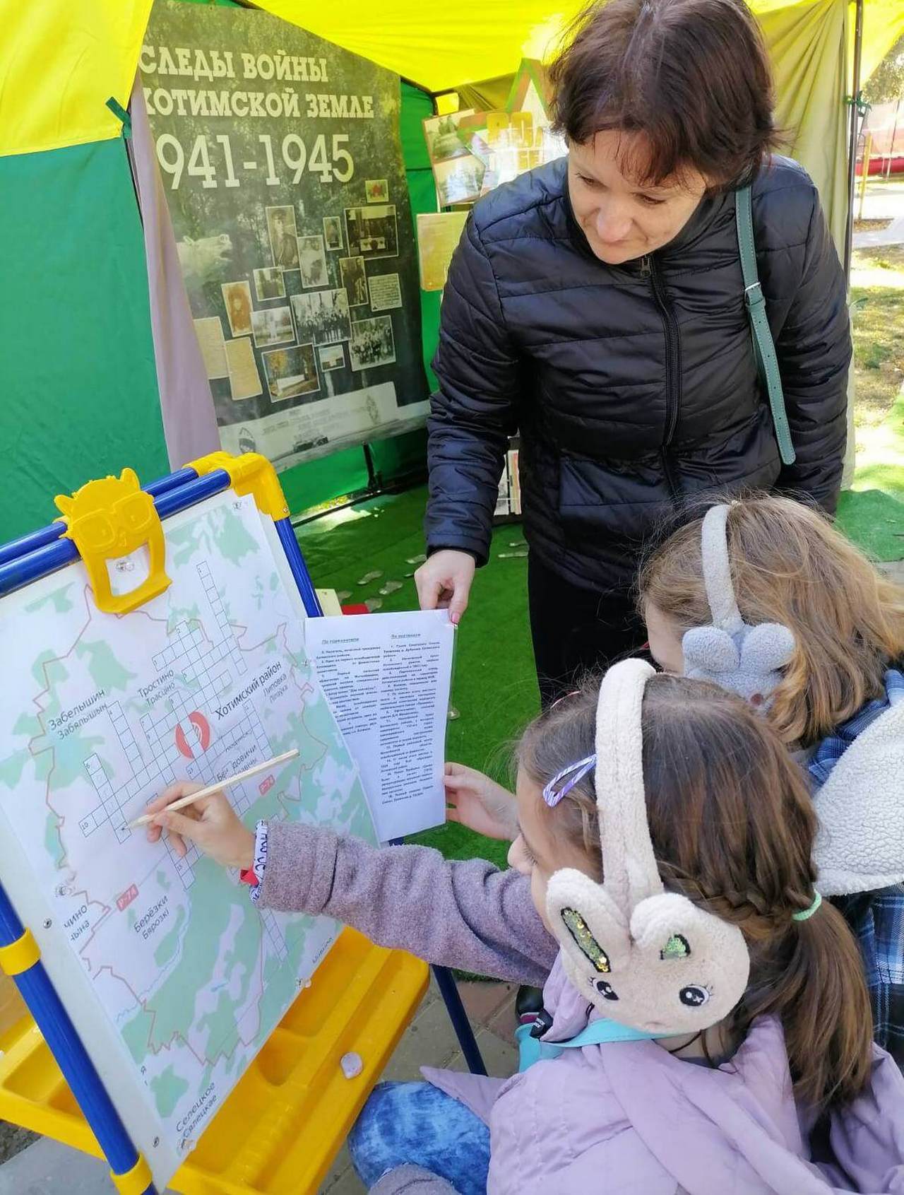 Также была проведена познавательная интерактивная игра-викторина «25 следов войны на Хотимщине», посвящённая освобождению Хотимска от немецко-фашистских захватчиков. Участники проверили свои знания о значимых событиях Великой Отечественной войны, героях и ключевых сражениях. Викторина включала вопросы о подвигах партизан, роли местного населения в борьбе с врагом и послевоенном восстановлении города. Также обсуждались малоизвестные факты и интересные истории, связанные с освобождением Хотимска.