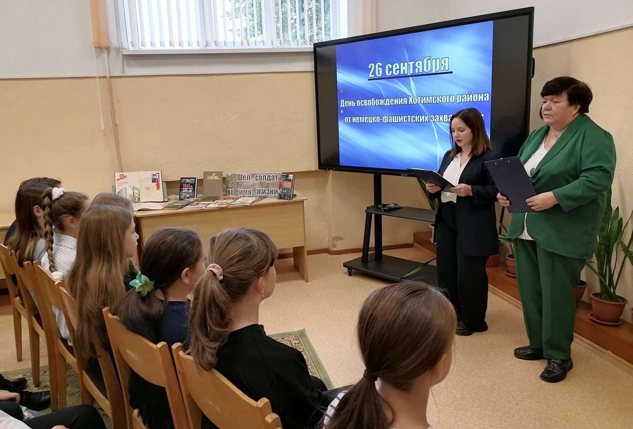 Накануне 82-й годовщины освобождения Хотимска от немецко-фашистских захватчиков в районном информационно-идеологическом центре библиотекари отдела обслуживания и информации центральной библиотеки для учащихся ГУО «Средняя школа №1 г. п.Хотимска» провели урок-воспоминание «Сквозь годы с нами говорит война».