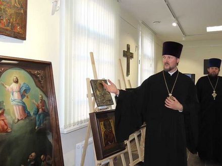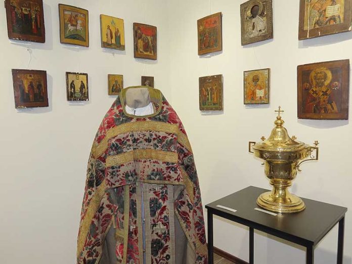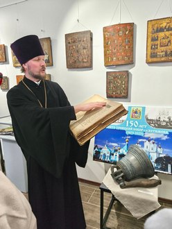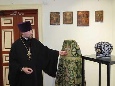 На открытии выставки отец Павел подробно рассказал о каждом привезенном им экспонате, имеющем не только духовную ценность, но и историческую. Это иконы, элементы одежды священнослужителей, а также книги, которые читал еще с отцом.