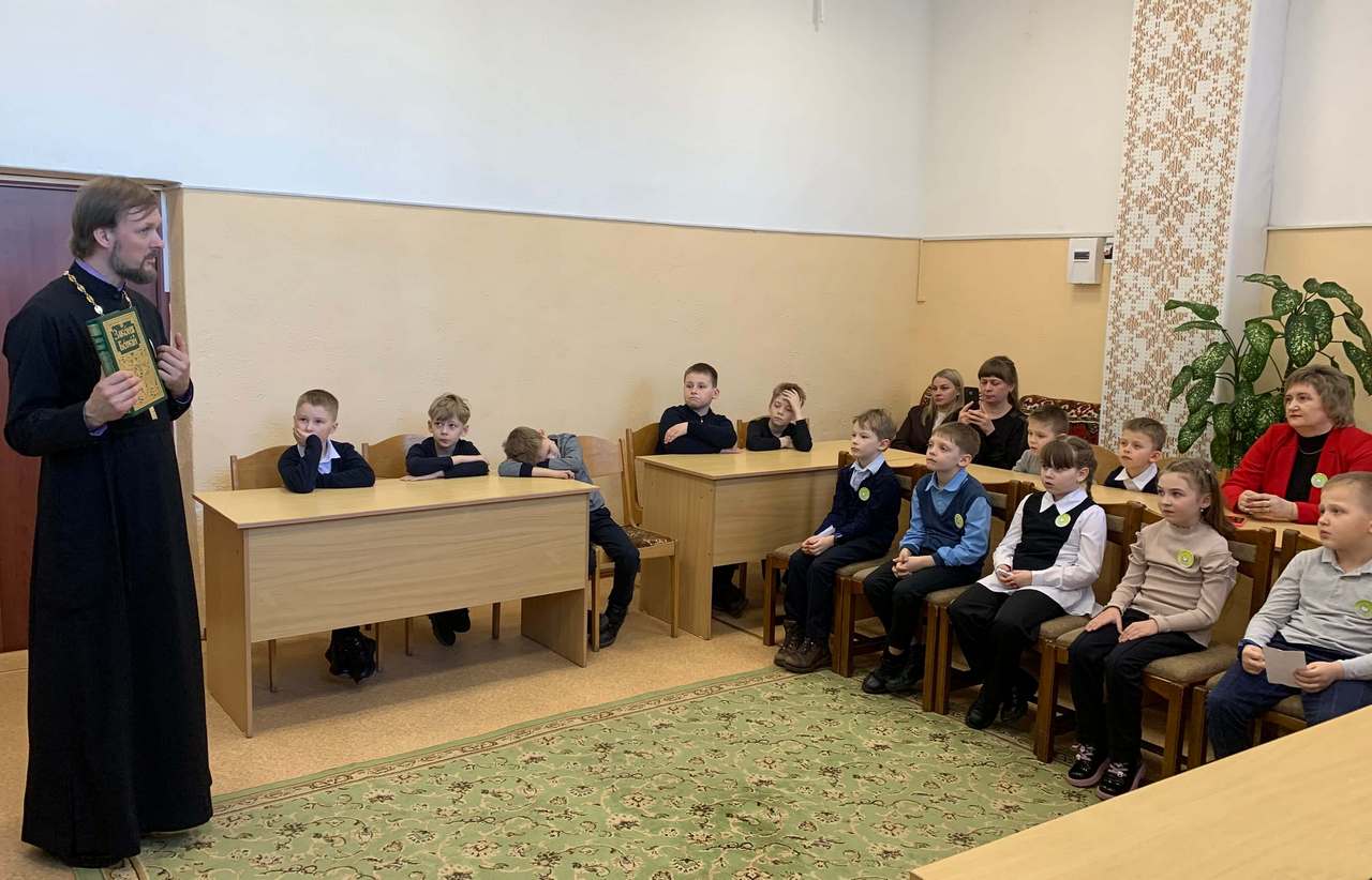 В преддверии Дня православной книги, который отмечается во всех епархиях Белорусской Православной Церкви 14 марта, стены центральной библиотеки наполнились детскими голосами и важными разговорами. Гостями и главными участниками православного библиотечного урока «Детям о главном: вера, добро, книга» стали учащиеся второго класса СШ № 1 г. п. Хотимска.