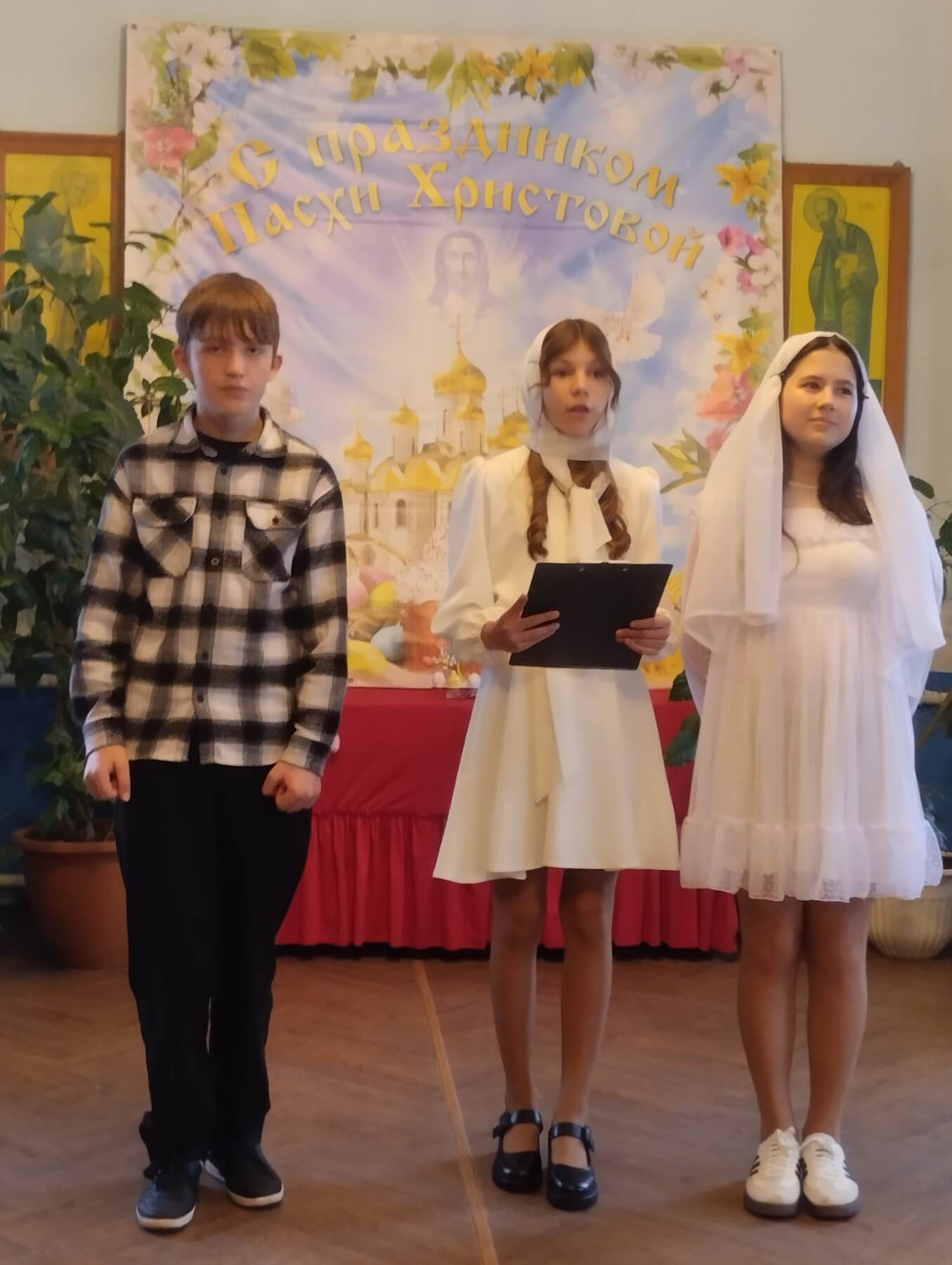 Каждый год учащиеся и учителя воскресной школы при Свято-Троицком соборе в светлый праздник Пасхи приглашают прихожан, родителей, дедушек, бабушек, друзей на детский утренник, радуют их своим выступлением. На представлении «Снова Пасха к нам пришла» ребята пели песни, читали стихи, исполняли танец, показывали спектакль на христианскую тему, посвященную празднику. Учащиеся ответственно и творчески подошли к подготовке каждого номера программы, подарили зрителям праздничное настроение, много положительных эмоций. В ответ получили искреннюю благодарность и дружные аплодисменты, но не только...